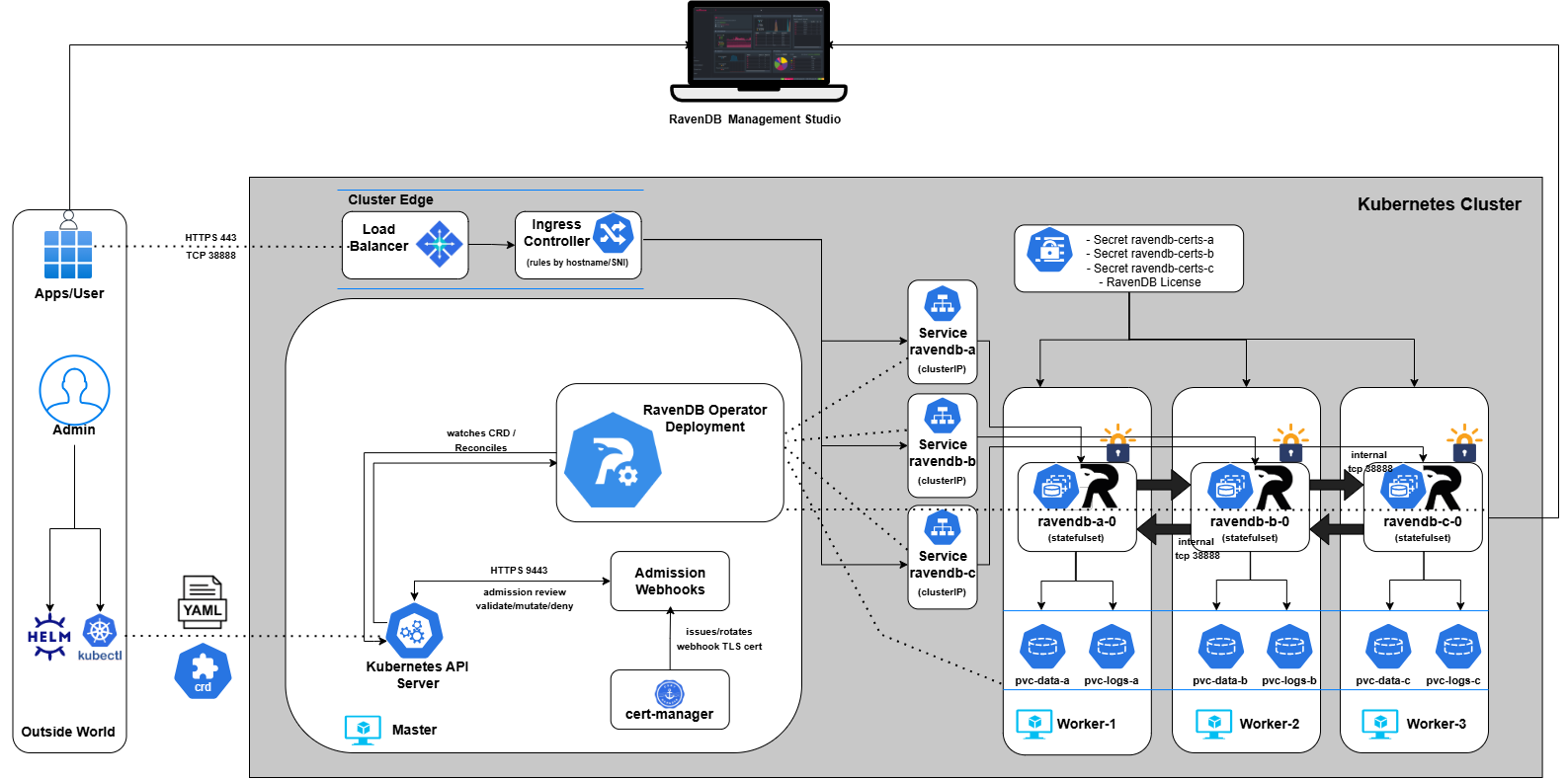 Previously, deploying a secure, clustered RavenDB instance on K8s required manual configuration of StatefulSets, Services, and complex TLS certificate chains.